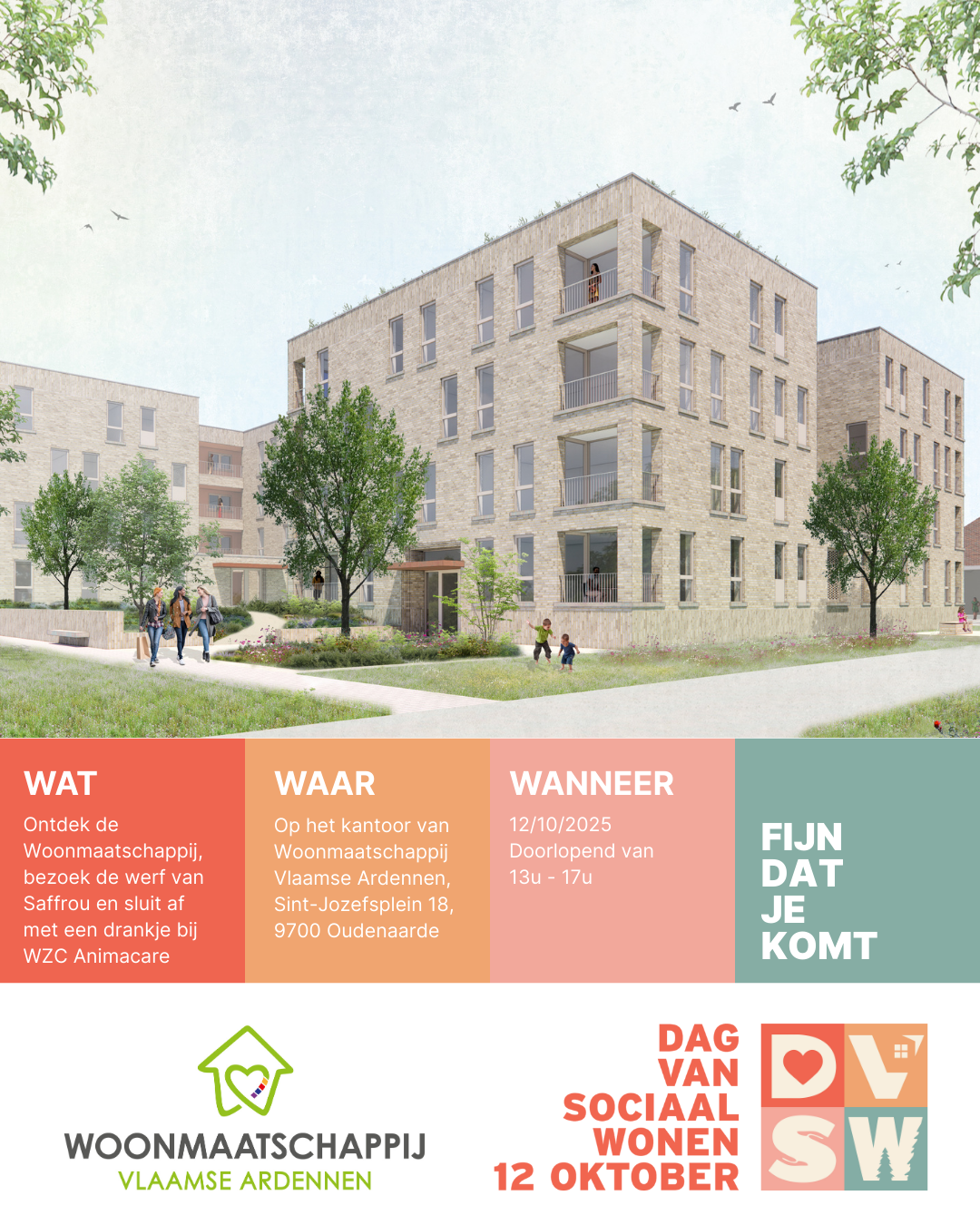 Alle activiteiten vinden plaats in en rond het hoofdkantoor van onze woonmaatschappij, Volkslaan 302 in Menen.